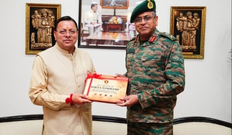 सीएम धामी से मिले मध्य कमान के जनरल ऑफिसर कमांडिंग-इन-चीफ लेफ्टिनेंट जनरल अनिंद्य सेनगुप्ता
