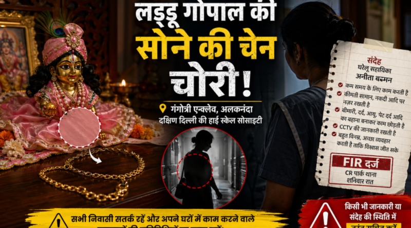 दिल्ली के सीआर पार्क इलाके में स्थित गंगोत्री एन्क्लेव में ठाकुर जी की सोने की चेन चोरी, घरेलू सहायिका पर संदेह
